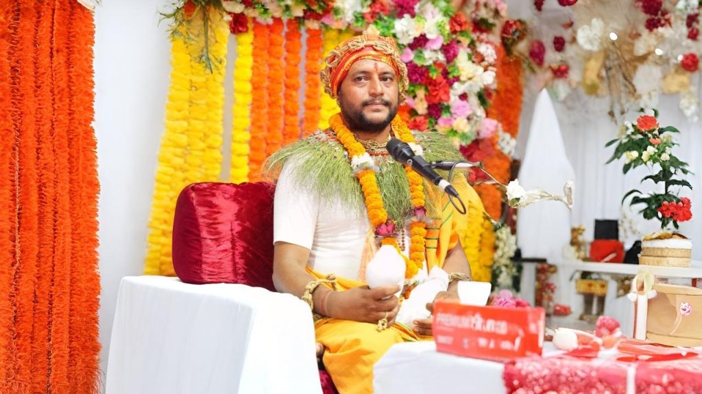 लामो शङ्खघोष गरेका अधिकारीलाई कोटीहोमका संकल्पकर्ता बालयोगेश्वर विजय कृष्णमूर्ति महाराज र अन्तर्राष्ट्रिय भागवत वाचिका देवी प्रतिभाले सम्मान गरेका थिए ।