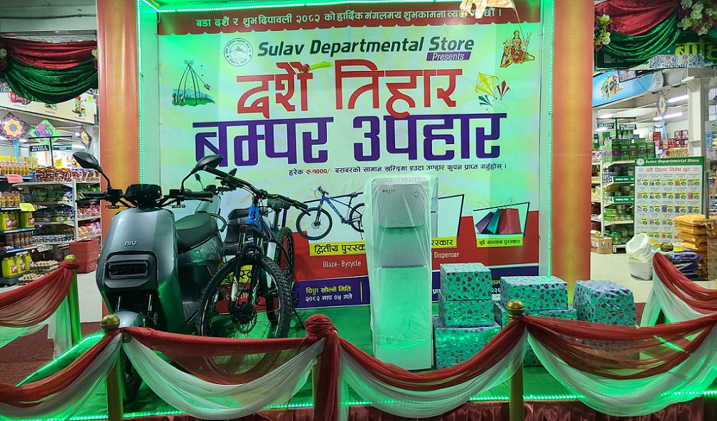 पोखरा ६ जरेबरमा रहेको सुलभ डिपार्टमेन्टल स्टोर्सले दशै तिहारमा ग्राकहरुलाई लक्षित गर्दै उपहार योजना ल्याएको छ । दशै र तिहारलाई लक्ष्त गरे ल्याएका योजनामा १ हजारको खरिदमा एउटा कुपन पाइने छ ।