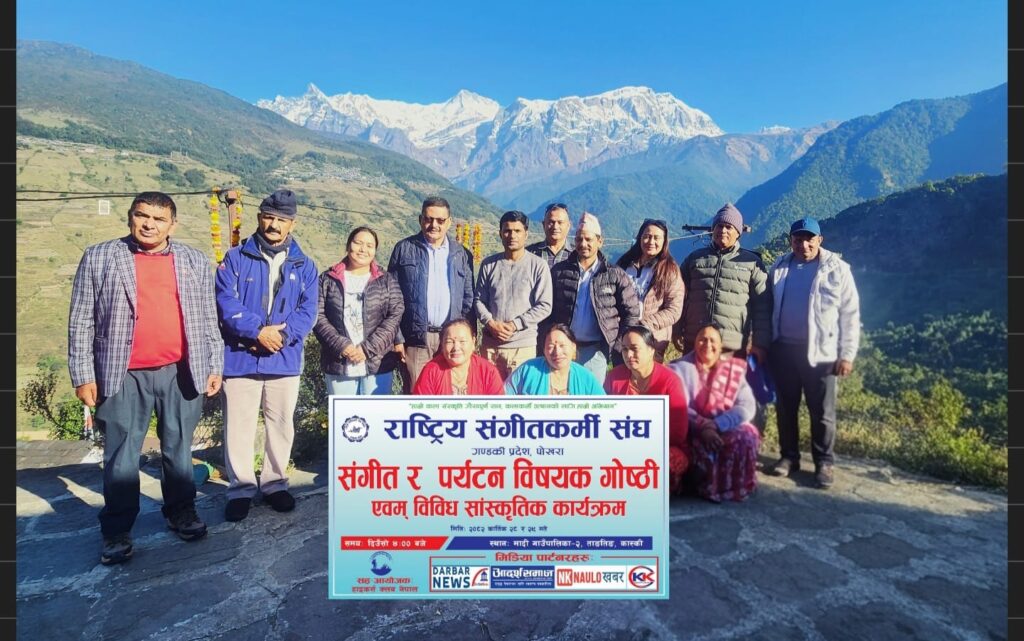 राष्ट्रिय संगीतकर्मी संघ गण्डकी प्रदेश समिति र हाइकर्स क्लब नेपालको आयोजनामा कार्तिक २८ गते संगीत र पर्यटन सम्बन्धी गोष्ठी तथा २९ गते हाइकिङ कार्यक्रम–६४ कास्कीको ताङतिङ सामुदायिक होमस्टेमा शनिबार सम्पन्न भएको छ ।