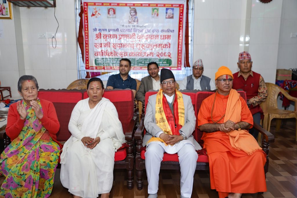 संस्थाले श्रीकृष्ण प्रणामी मन्दिर, वृन्दावन धाम, स्वामी सदानन्द गुरुकुलम्, अन्नपूर्ण भोजनालयको कुशल व्यवस्थापन गर्दै आएकोमा खुशी व्यक्त गर्दै उनले निकट भविष्यमै प्रणामी गौशाला, प्रणामी विद्या मन्दिर, मंगल संस्कृत विद्यालय, आपतकालीन अस्पताल, प्रणामी ध्यान केन्द्र सञ्चालन गर्ने योजना बनाएकोमा सफलताको कामना पनि गरे ।संस्थाका अध्यक्ष स्वामी १०८ विष्णु वशिष्टलाई उहाँले व्यक्तिगत पाँच हजार सहयोग पनि हस्तान्तरण गरे ।