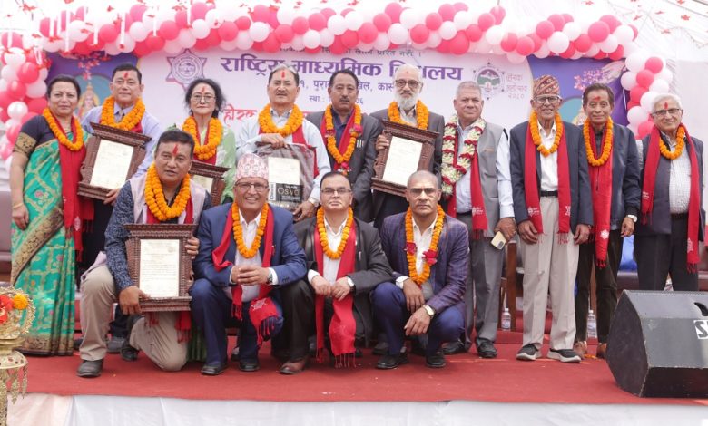 पोखरा । पोखराको पुरानो टुँडिखेलमा रहेको राष्ट्रिय माध्यामिक विद्यालयले स्थापनको ७५ वर्ष प्रवेशको अवसर पारी आयोजित हीरक महोत्सव तथा वृहत पुनर्मिलन कार्यक्रममा विद्यालयका १५ जना पूर्व विद्यार्थीहरुलाई सम्मान गरिएको छ ।