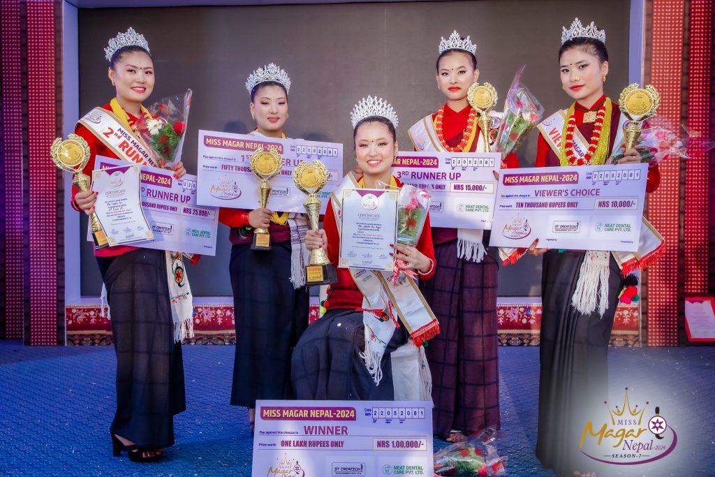 सातौँ मिस मगर नेपाल–२०२४ को उपाधि दग्नाम म्याग्दीकी कृष्टिना पुनमगरले जितेकी छिन् । प्रतियोगिताको फाइनलमा पुगेका ११ प्रतिस्पर्धी मध्ये उत्कृष्ट बन्दै कृष्टिनाले मिस मगर नेपाल–२०२४ को उपाधि जितेकी हुन् । उपाधिसँगै उनले ताज पहिरिइन् । यस्तै नगद रु १ लाख, ट्रफी तथा आकर्षक गिफ्ट ह्याम्पर प्राप्त गरिन् । कृष्टिनाले विधागत तर्फ मोस्ट चार्मिङ अवार्डसमेत हात पारिन् ।