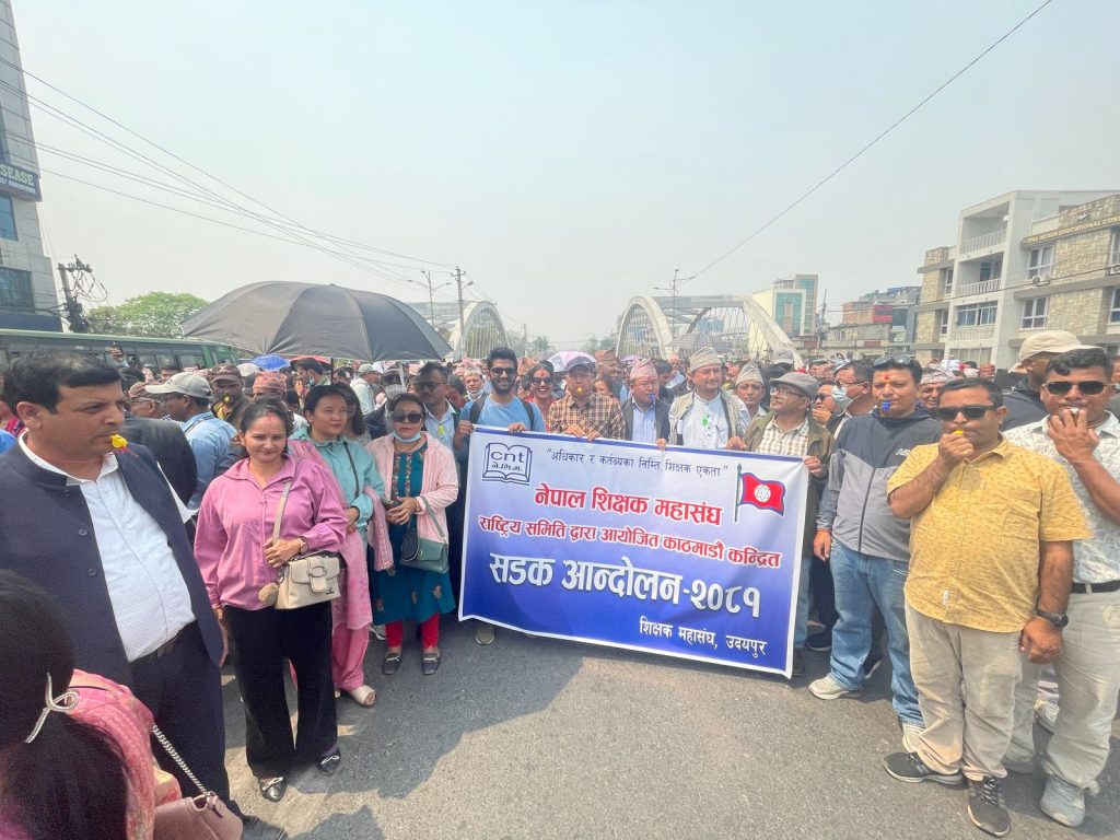 गएको बुधवारदेखि काठमाण्डौ केन्द्रित प्रदर्शन गरिरहेका शिक्षकहरूले आइतबार काठमाण्डौको माइतीघरमा सिठी जुलुस निकालेका हुन् । उनीहरूले माइतीघरदेखि बानेश्वरसम्म सिठी बजाएर सरकारको ध्यानाकर्षण गराएका छन् । शिक्षकहरूले हिजो सडकमा सुतेर विरोध जनाएका थिए ।