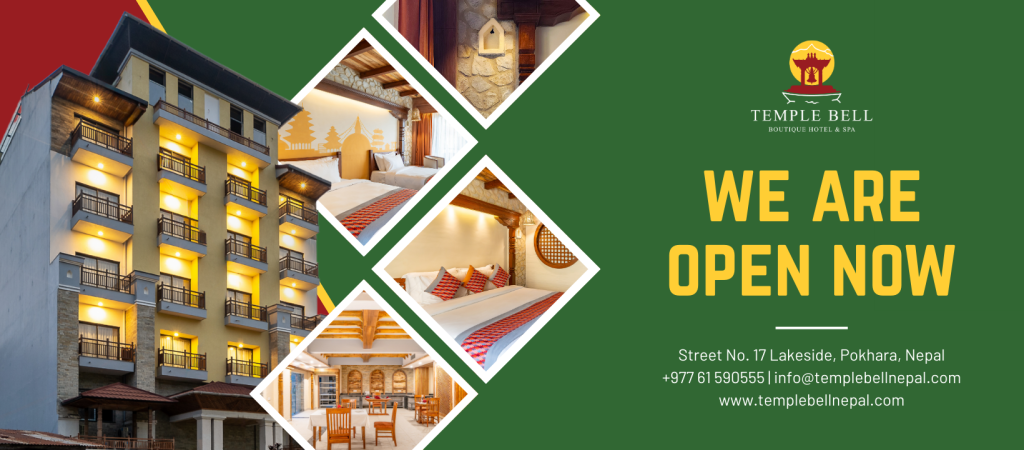 पोखराको लेकसाइडमा ’टेम्पल बेल बुटिक होटल एण्ड स्पा’ सञ्चालनमा आएको छ । जग्गासहित एक अर्ब २५ करोडको लागतमा सञ्चालनमा आएको यो होटलमा दुई प्रकारका सुइट कोठा समेटिएका छन् । जसअन्तर्गत एउटा प्रेसिडेन्टल सुइट र एउटा जुनियर सुइट रहेका छन्। साथै, होटलमा पाँच वटा सुपर डिलक्स र ४७ वटा डिलक्स कोठा गरि कुल ५५ वटा कोठा रहेको टेम्पल बुटिक एण्ड स्पाका प्रबन्ध निर्देशक भीष्मराज पौडेलले जानकारी दिए ।