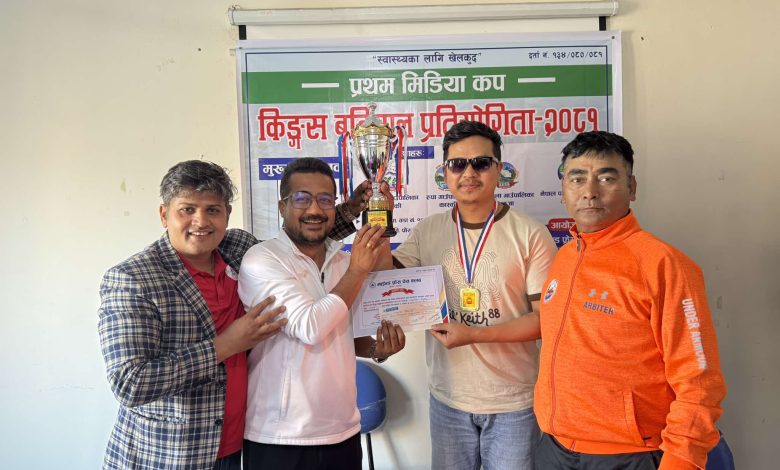पोखरामा शनिबार सम्पन्न भएको प्रथम मिडिया कप किङ्स बुद्धिचाल प्रतियोगिताको उपाधि फोटो पत्रकार युनिश गुरुङले जितेका छन् ।